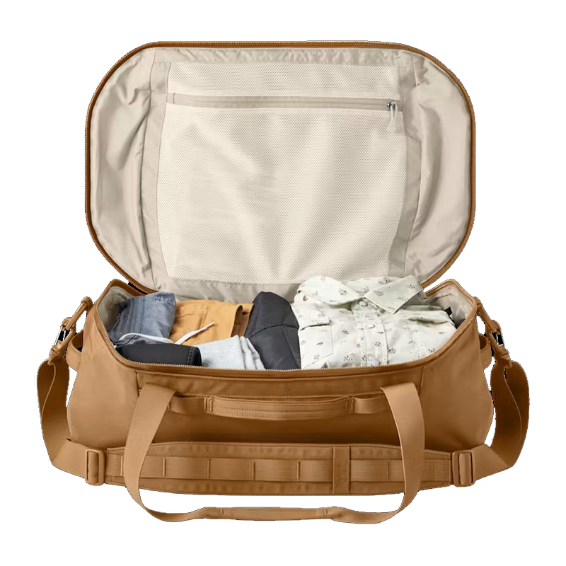 - DIVIDER PANELS AND POCKETS - The end to mountains of clothes. Two divider panels separate the bag into three sections, and completely tuck away when not in use. Internal pockets keep essentials stowed away and still within reach.