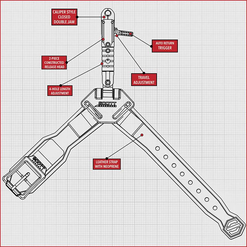 Featuring a new auto-return roller sear trigger, this wrist strap release offers quicker, smoother shooting when seconds count. Adjust the travel and length for a tailored fit that feels natural on any archer. With a caliper-style double jaw and reliable 2-piece head, you get a rock-solid hold every time you draw.